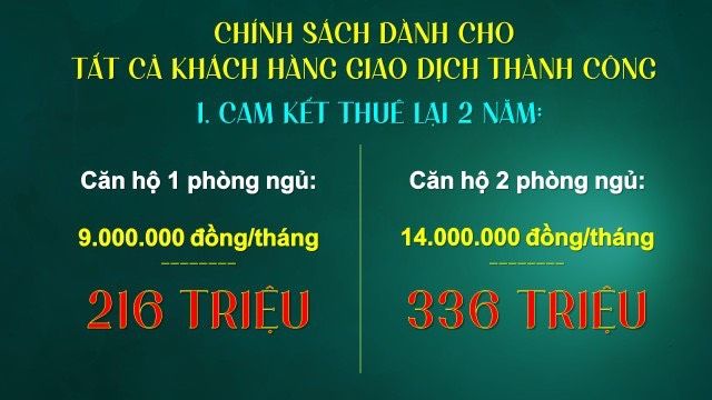 + Sẳn hợp đồng cho chủ đẩu tư thuê lại 14tr/tháng cam kết lợi nhuận thu lại 336tr sau 2 năm