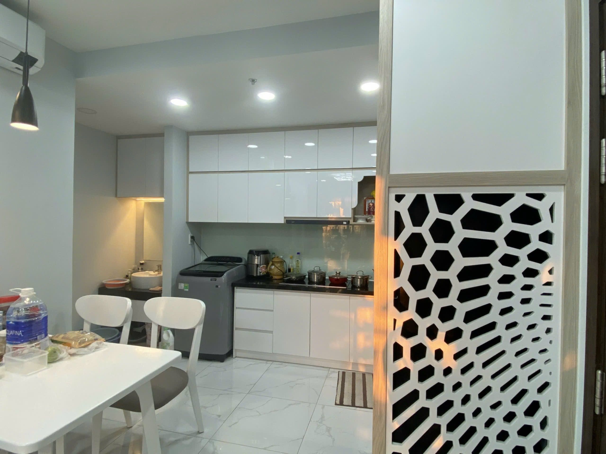 - Máy lạnh - Máy giặt. - Tủ bếp trên dưới. - Bếp từ nấu ăn.