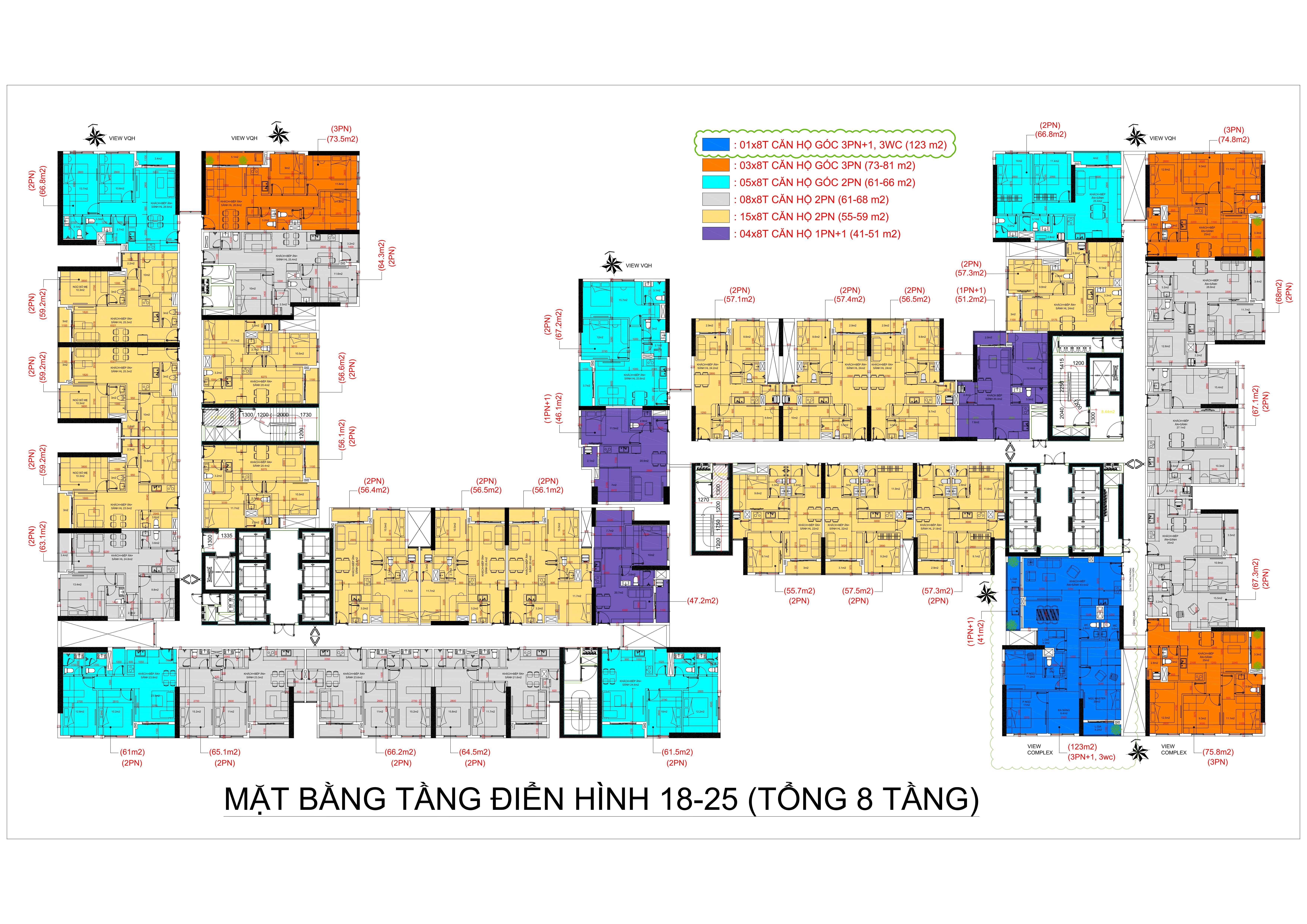 - 646 căn 2PN diện tích 54,6m² - 67m².