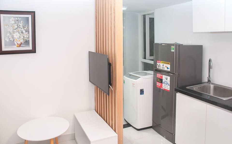 Giá cho thuê gồm tất cả trang thiết bị như sau: Tivi - tủ lạnh - máy giặt - sofa - giuong + nệm + có bếp từ nấu ăn riêng - WC.