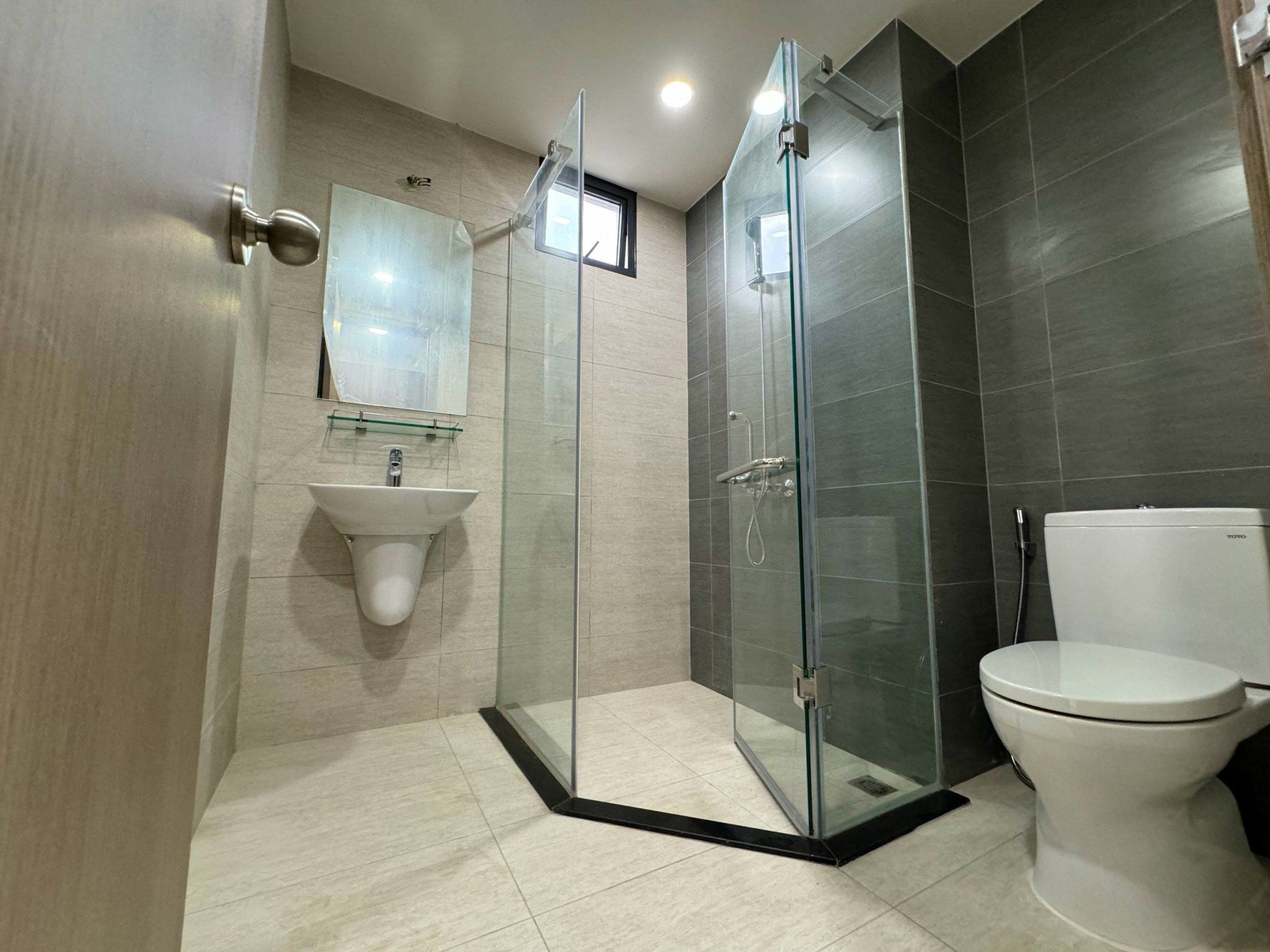 - Bàn giao căn hộ full nội thất cao cấp với tủ bếp trên bếp dưới, sàn gỗ phòng ngủ, gạch bóng 60x60 phòng khách, bancol kính cường lực, thiết bị vệ sinh TOTO,...