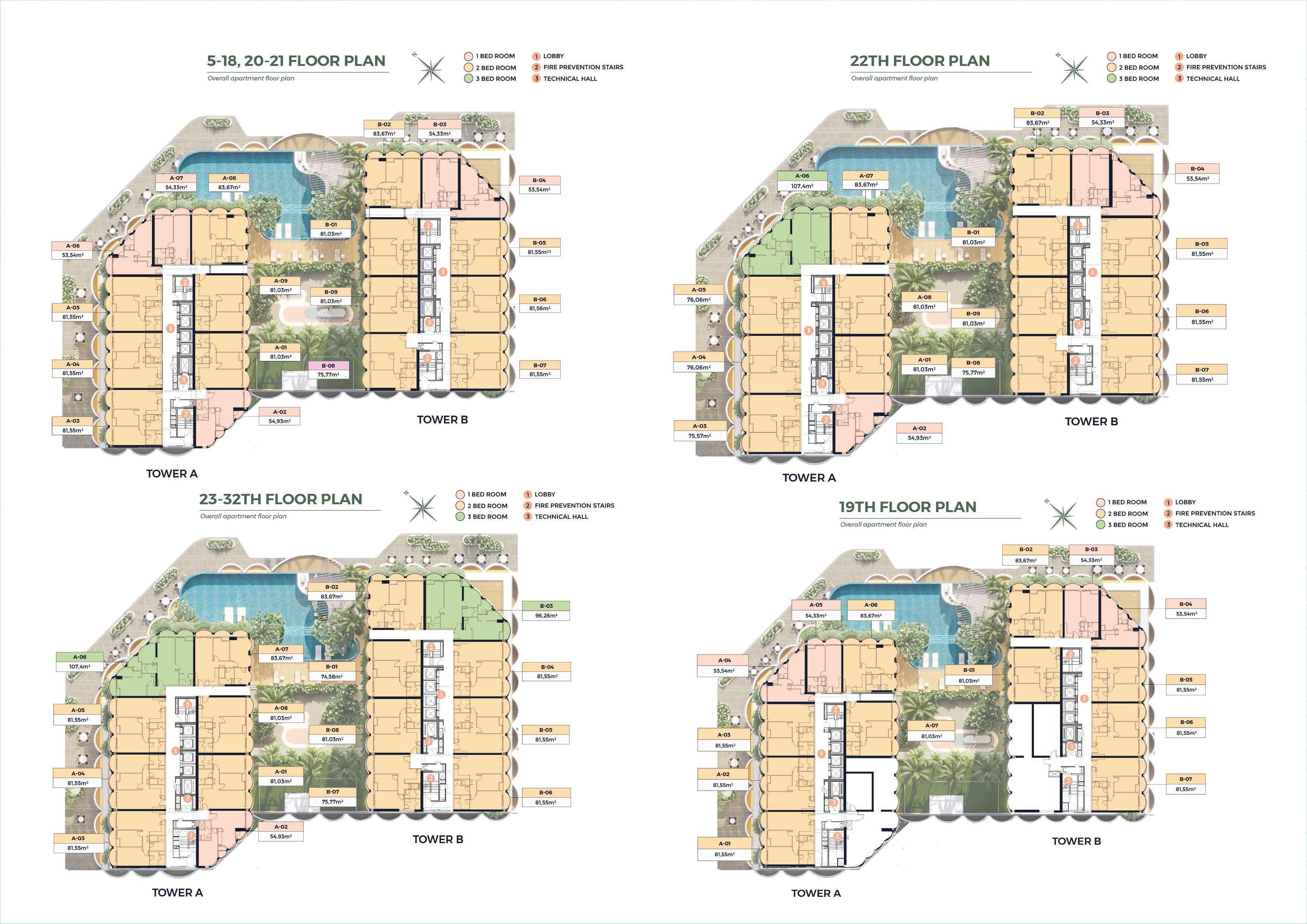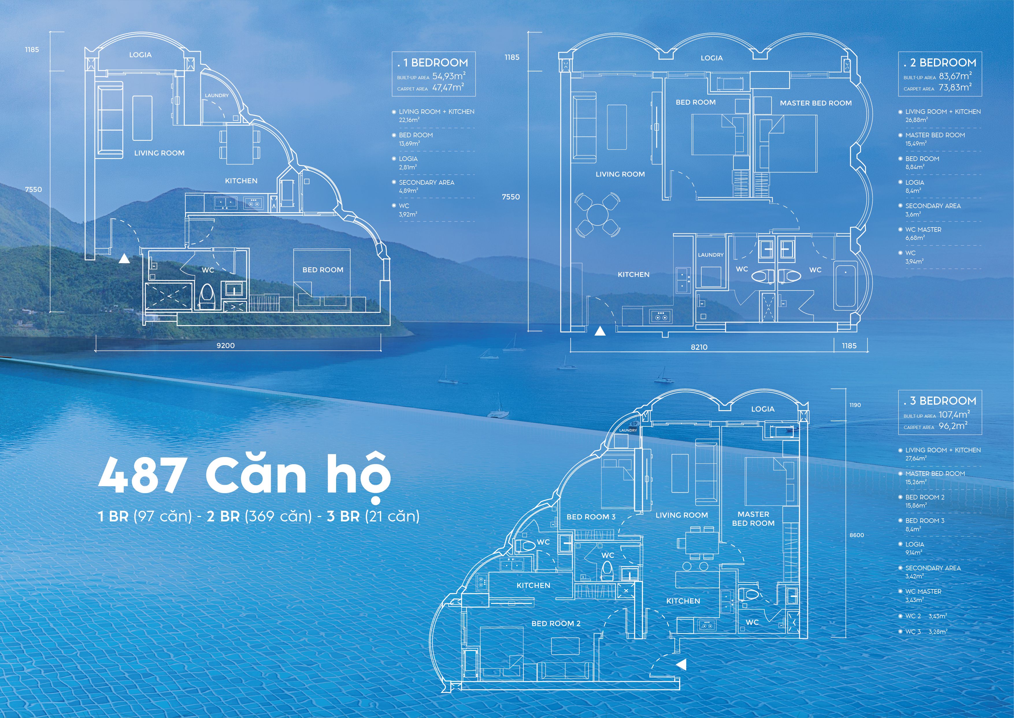 - Tổng 487 căn hộ (1PN, 2PN, 3PN, Penthouse…)